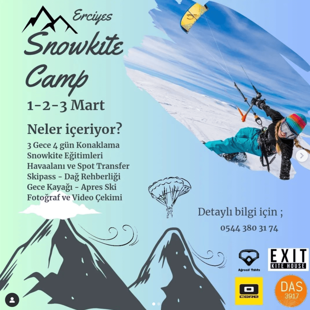 1-3 Mart tarihleri arasında Agresif Tahte ve Exit Kite House ile birlikte Erciyes Kayak Merkezi’nde Snowkite eğitim kampı düzenleniyor.