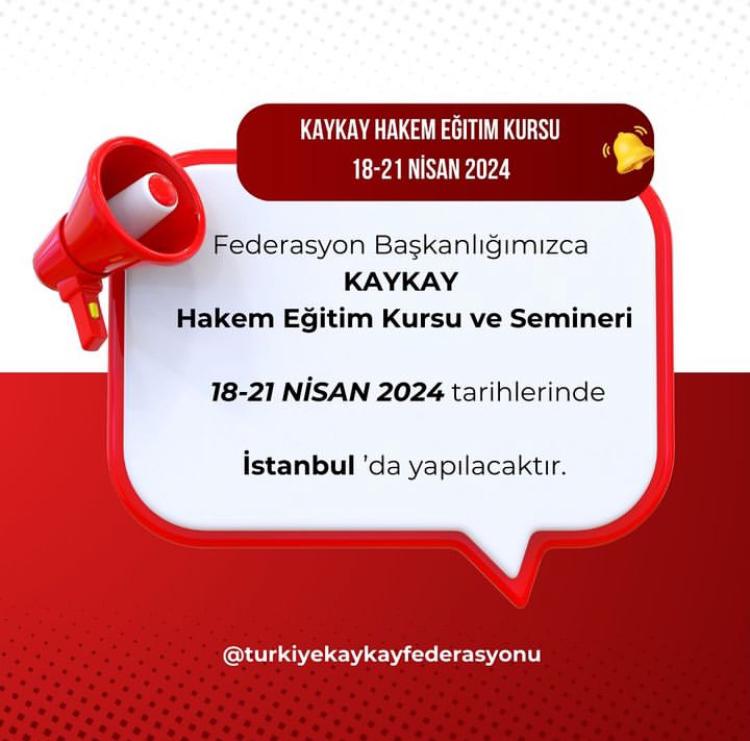 Türkiye Kaykay Federasyonu tarafından düzenlenen Hakem Eğitim Kursu ve Semineri 18-21 Nisan’da İstanbul’da düzenlenecektir. Kurs katılım ücreti 200tl olup başvuru formu ile dekontu kaykay@kaykay.org.tr adresine gönderilmesi gerekmektedir.