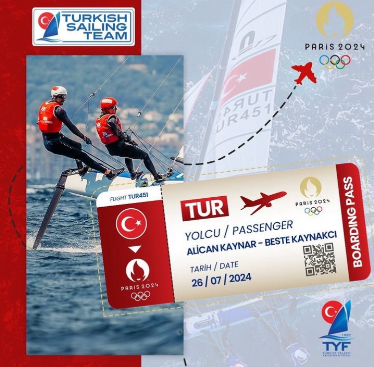 IQ Foil Kadinlar Sinifinda Türkiye’yi temsil edecek olan Milli Sörfçü Merve Vatan , Fórmula Kite Kadinlar Sinifinda Türkiye’yi temsil edecek olan Derin Atakan , Nacra 17 sinifinda yarışacak olan Alican Kaynar ve Beste Kaynakci 2024 Olimpiyatlarina katılmak için Fransa’nin başkenti Paris’e gidecekler.