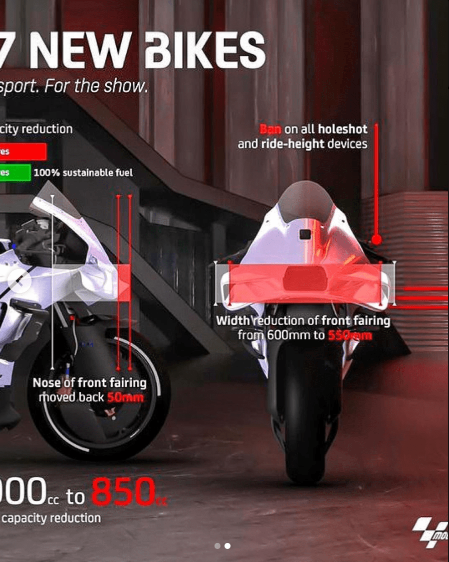 2 zamanlı 500cc motorlardan, 4 zamanlı 990cc motorlara geçerek başlayan modern MotoGP dönemi, 2007’de 800cc’ye düşürüldü ancak bu güncelleme hiç sevilmedi ve 2012’de 1000cc’ye geri yükseltildi. Ancak 2027 sezonuyla beraber yeni motosikletler gelecek ve motorlar 850cc olacak.