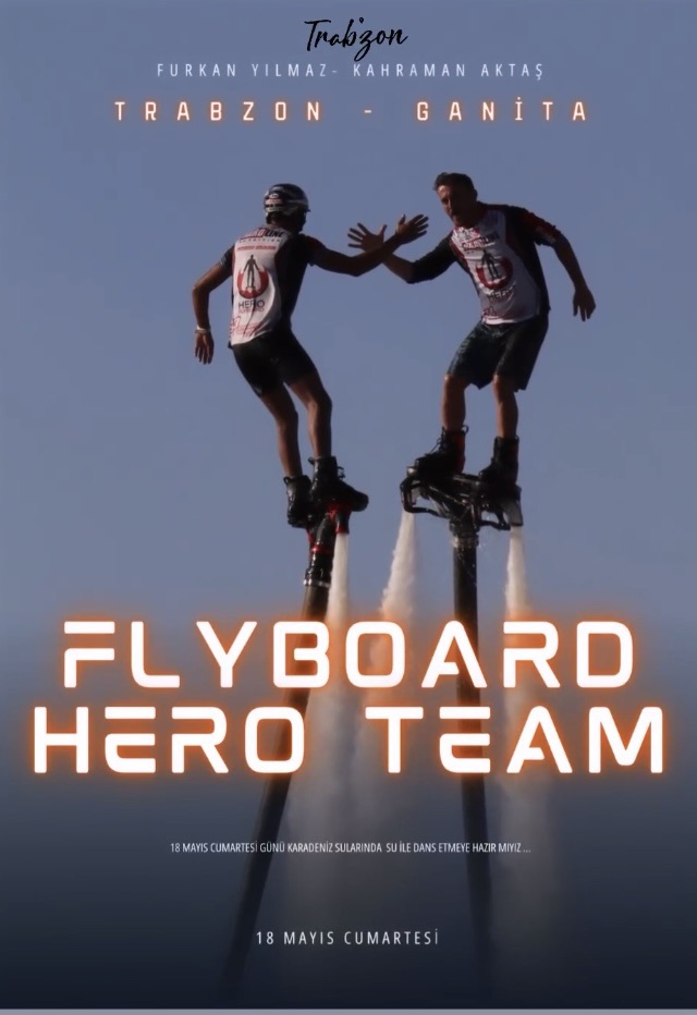 Furkan Yılmaz ve Kahraman Aktas’tan oluşan Flyboard Hero ekibi 18 Mayıs Cumartesi günü Trabzon Ganita sahilinde show düzenlemekte.