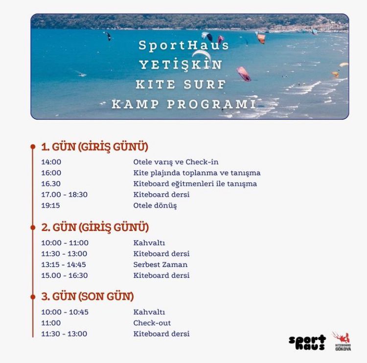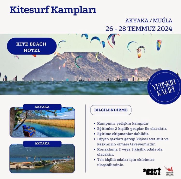 Kiteboard Gökova’nın profesyonel eğitmenleri eşliğinde, SportHous ile Skilabtr ekibinin iş birliğinde 26-28 Temmuz tarihleri arasında Kitesurf kampı düzenlenmekte.
