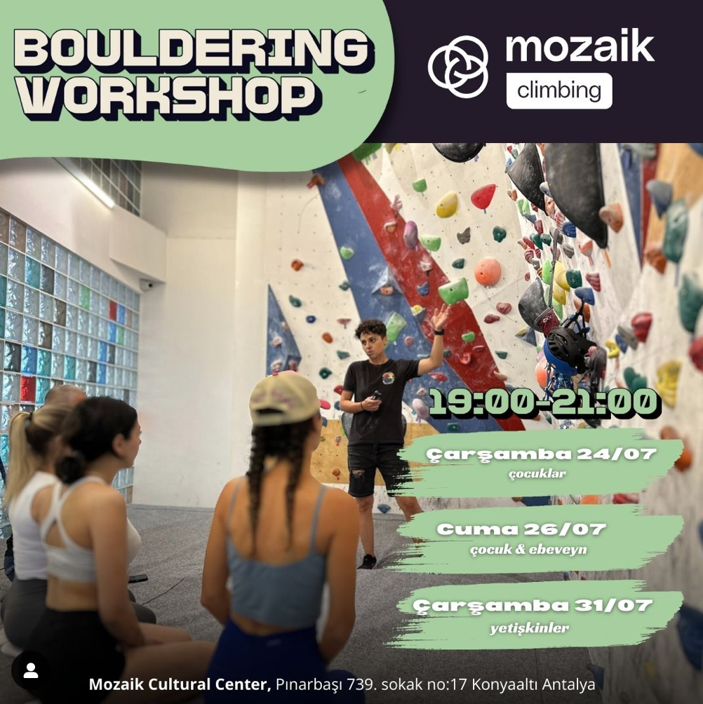 Antalya’da Mozaik Climbing’de grup Bouldering Atolyeleri başlıyor.