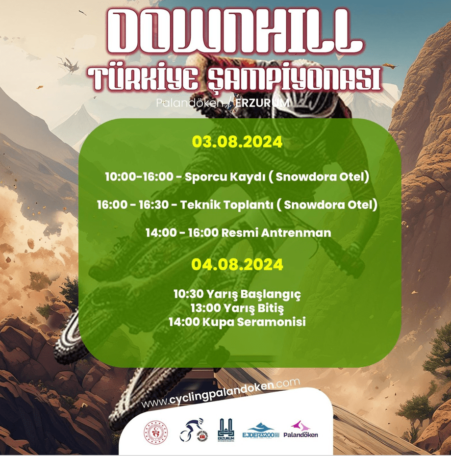Türkiye Bisiklet Federasyonunun 2024 yılı faaliyet programında yer alan “Türkiye Downhill Bisikleti Şampiyonası” 03 – 04 Ağustos 2024 tarihinde Erzurum ilinde yapılacaktır.