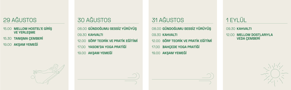 Mellow Turkey ekibi, Ordu’daki hostellerinde 29 Ağustos – 1 Eylül tarihleri arasında sörf kampı düzenlemekte.