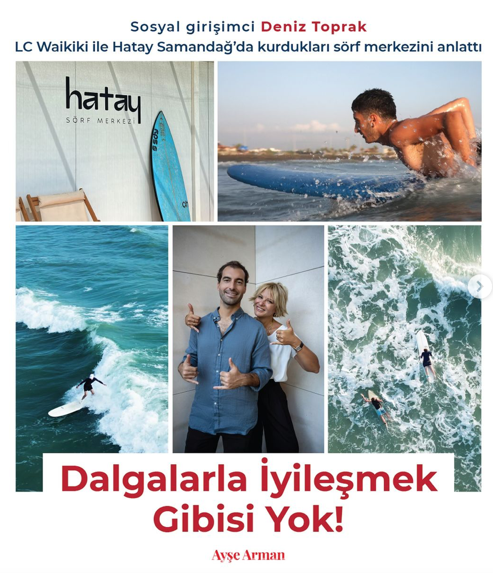 Türk gazeteci ve köşe yazarı Ayşe Arman, sosyal girişimci Deniz Toprak (Mellow Turkey) ile röportaj yaparak LC Waikiki’nin de desteklediği Hatay/Samandağ’da kurulan sörf merkezi hakkında yazı yazdı.