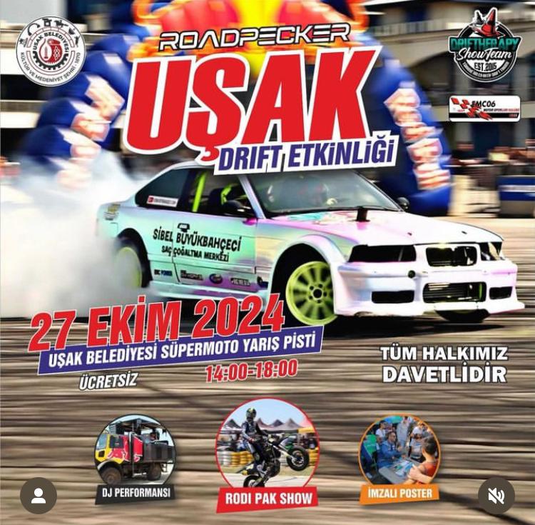 27 Ekim Uşak Belediyesi Süpermoto Yarış Pistinde Drift Therapy grubu tarafından drift şovu, Rodi Pak şov, DJ performansı, imzalı posterler ve sürpriz konukların olucağı ücretsiz etkinlik düzenlenecek.