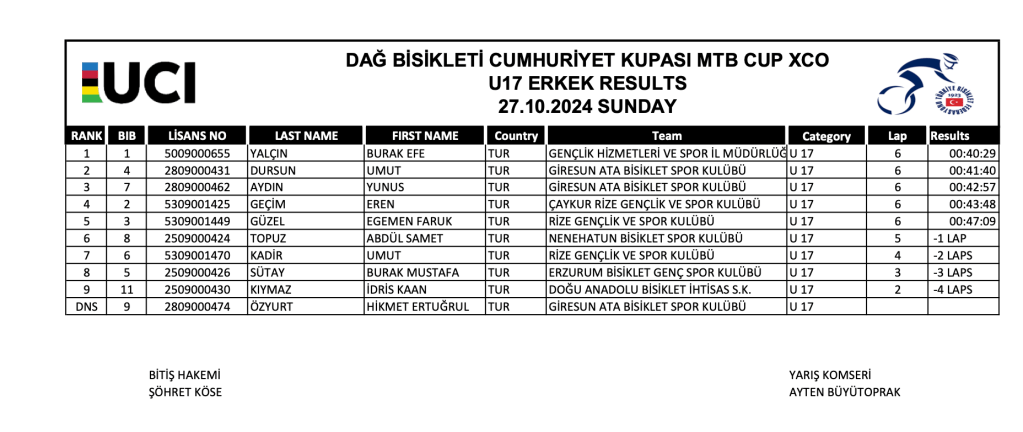 Erzurum’da 27 Ekim 2024 tarihinde gerçekleştirilen Ulusal Dağ Bisikleti Cumhuriyet Kupası sonuçları açıklandı.