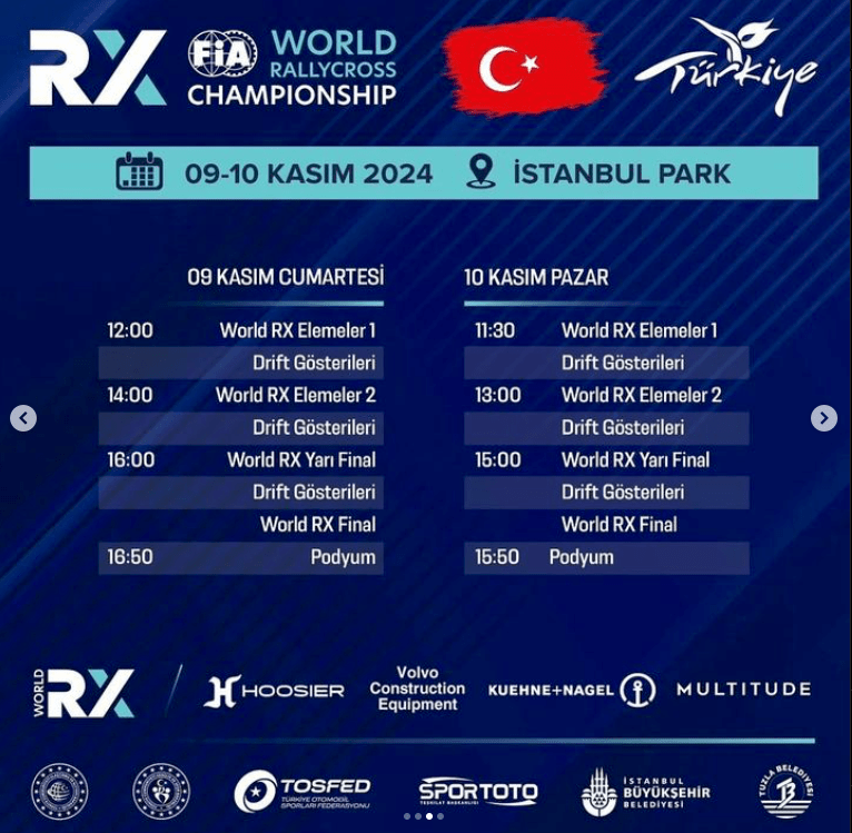 2024 FIA Dünya Rallikros Şampiyonası final yarışı 09-10 Kasım tarihlerinde, İstanbul Yarış Pisti’nde gerçekleştirilecek. Etkinlik aynı zamanda drift şovlarına da ev sahipliği yapacak.