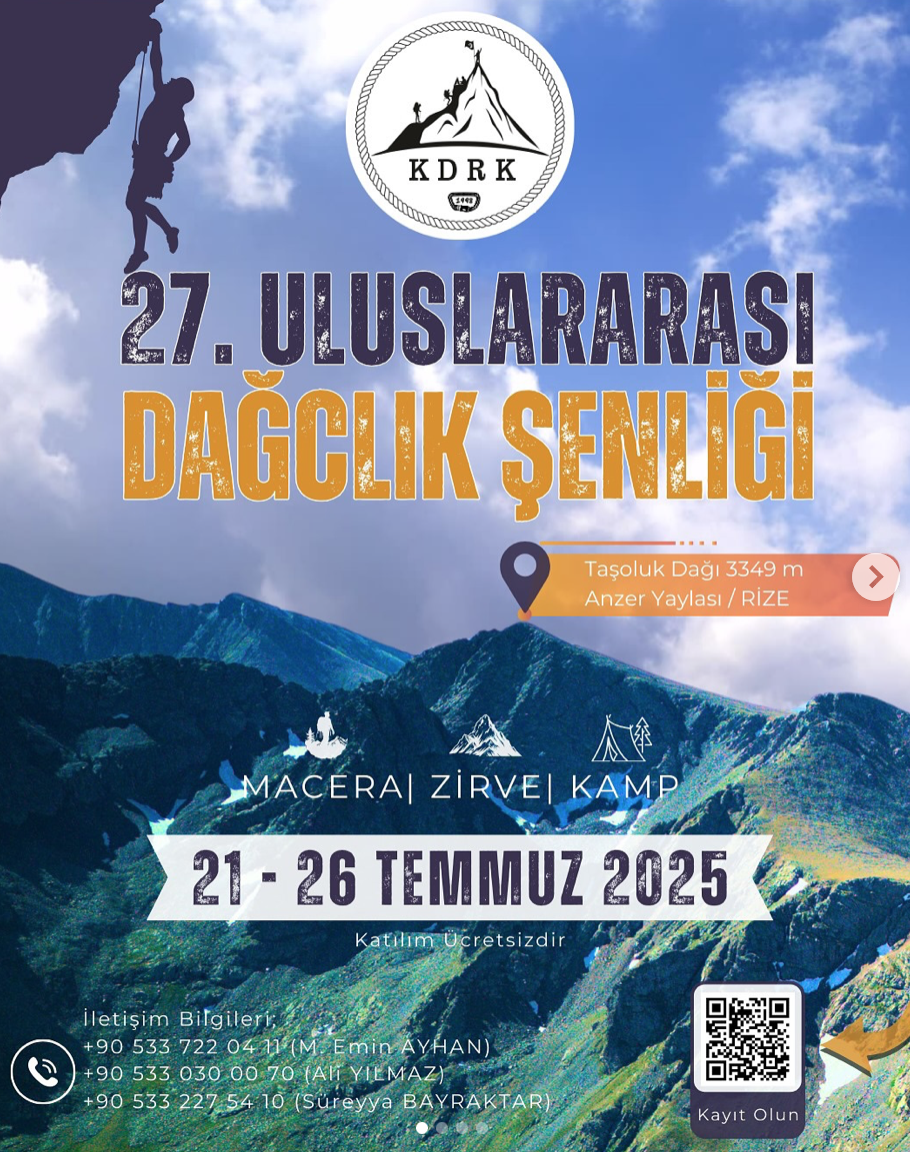 KDRK Spor Kulübü tarafından Rize’de 21 – 26 Temmuz 2025 tarihleri arasında zirve dağcılık etkinliği düzenlenmekte.