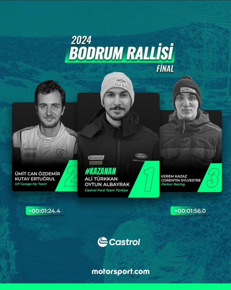 Karya Otomobil Spor Kulübü tarafından düzenlenen 2024 Petrol Ofisi Maxima Türkiye Ralli Şampiyonası üçüncü ayağı, Rally Bodrum 26-28 Nisan tarihleri arasında tamamlandı. Finalde Castrolford ekibinden Fiesta R3 aracıyla yarışan Ali Türkkan ve copilotu Oytun Albayrak yarışı kazanarak bitirirken Marmaris Rallisinde birincilik elde eden Ümit Can Özdemir ikinci sırayı, Sarıkamış Rallisi’ni birincilikle bitiren Kerem Kazan ise…