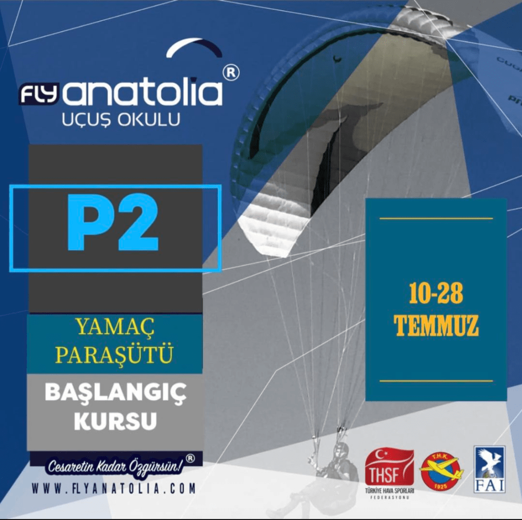Fly Anatolia Uçuş Okulu P2 Yamaç Paraşütü Başlangıç Kursu 10-28 Temmuz