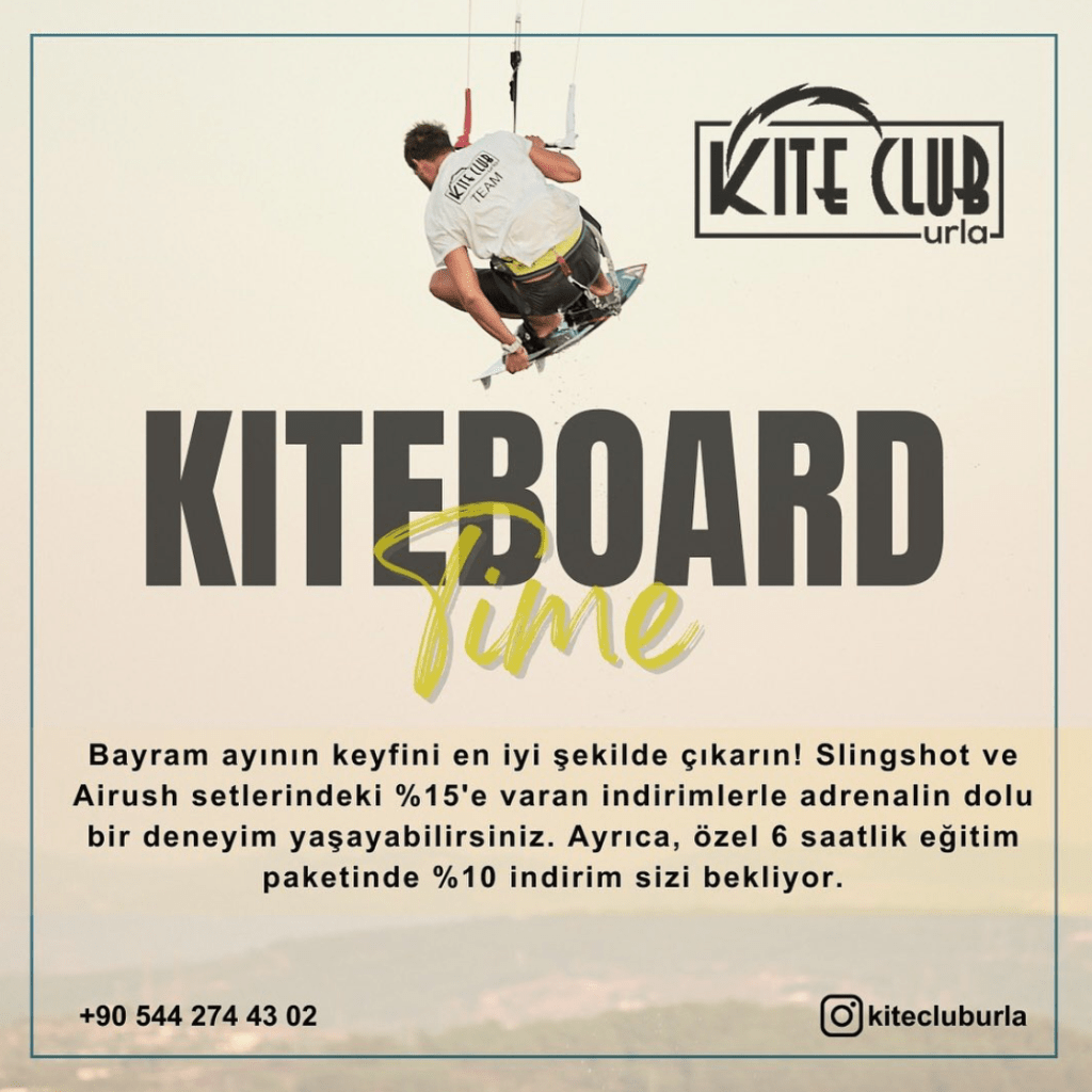 Kite Club Urla, kurban bayramı süresince Slingshot ve Airush setlerinde %15 indirim uygulamakta. Ayrıca 6 saatlik özel eğitim paketlerinde ise %10 indirim bulunmakta. Detaylı bilgi ve rezervasyon için; 0544 274 43 02