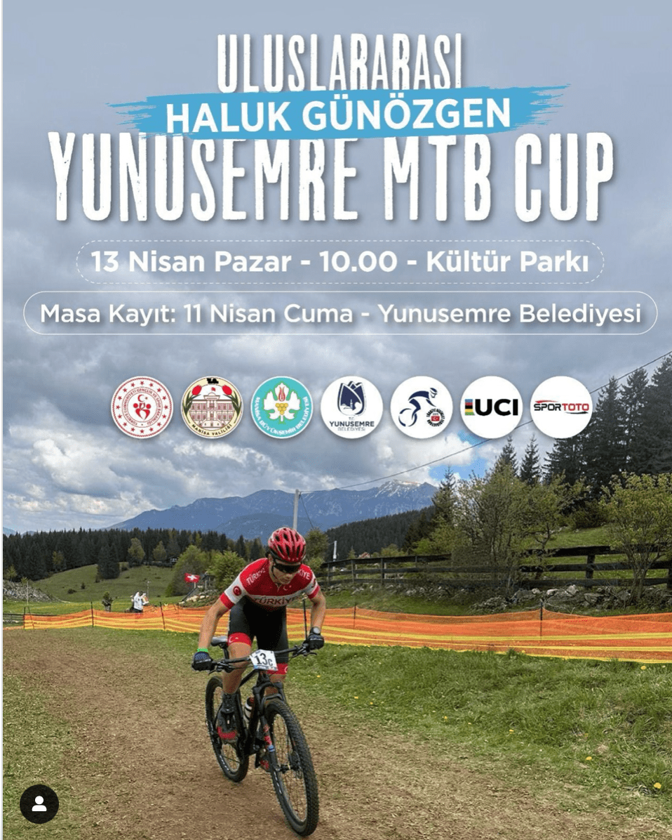 Türkiye Bisiklet Federasyonunun 2025 yılı faaliyet takviminde yer alan “HALUK GÜNÖZGEN YUNUSEMRE MTB CUP C2 ULUSAL VE ULUSLARARASI DAĞ BİSİKLETİ YARIŞI” 11 – 13 Nisan 2025 tarihleri arasında Manisa’nın Yunusemre ilçesinde düzenlenecektir. Yarışmanın sporcu kayıtları 11 Nisan 2025 tarihinde saat 13:00-17:30 saatleri arasında; Yunus Emre Belediyesi Kayıt Ofisi adresinde yapılacaktır. Detaylı bilgi için; https://www.bisiklet.gov.tr/#Duyurular-1