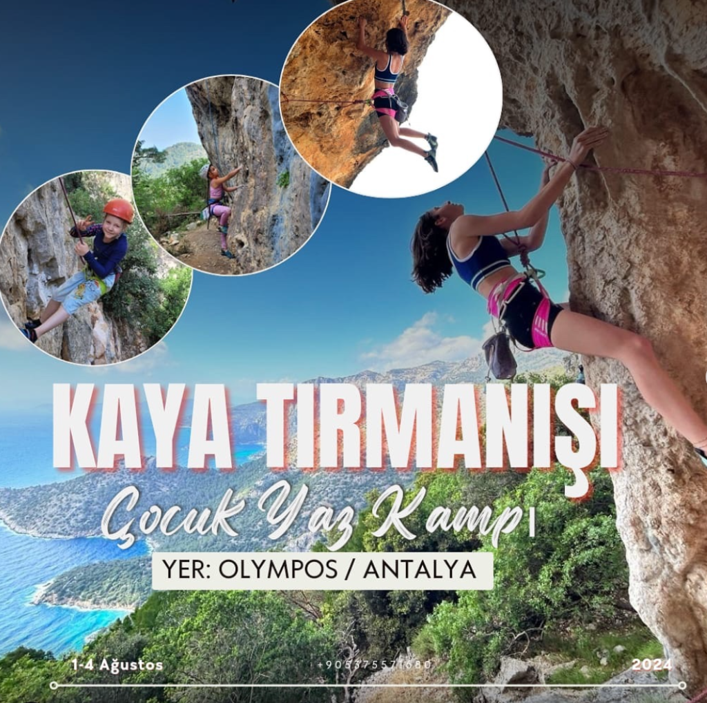 Yediburunlar Spor Kulübü ile 1-4 Ağustos tarihleri arasında Olimpos/ Antalya’da çocuk yaz kampı olarak kaya tırmanışı etkinliği düzenlenmekte. 4 gün sürecek olan sınırlı kontenjana sahip kamp’ta kaya tırmanışının yanında kano ve sup da yapılabilecek; ücreti ise 11.000tl. Detaylı bilgi ve katılım için; Yahya Koç 0537 5571680