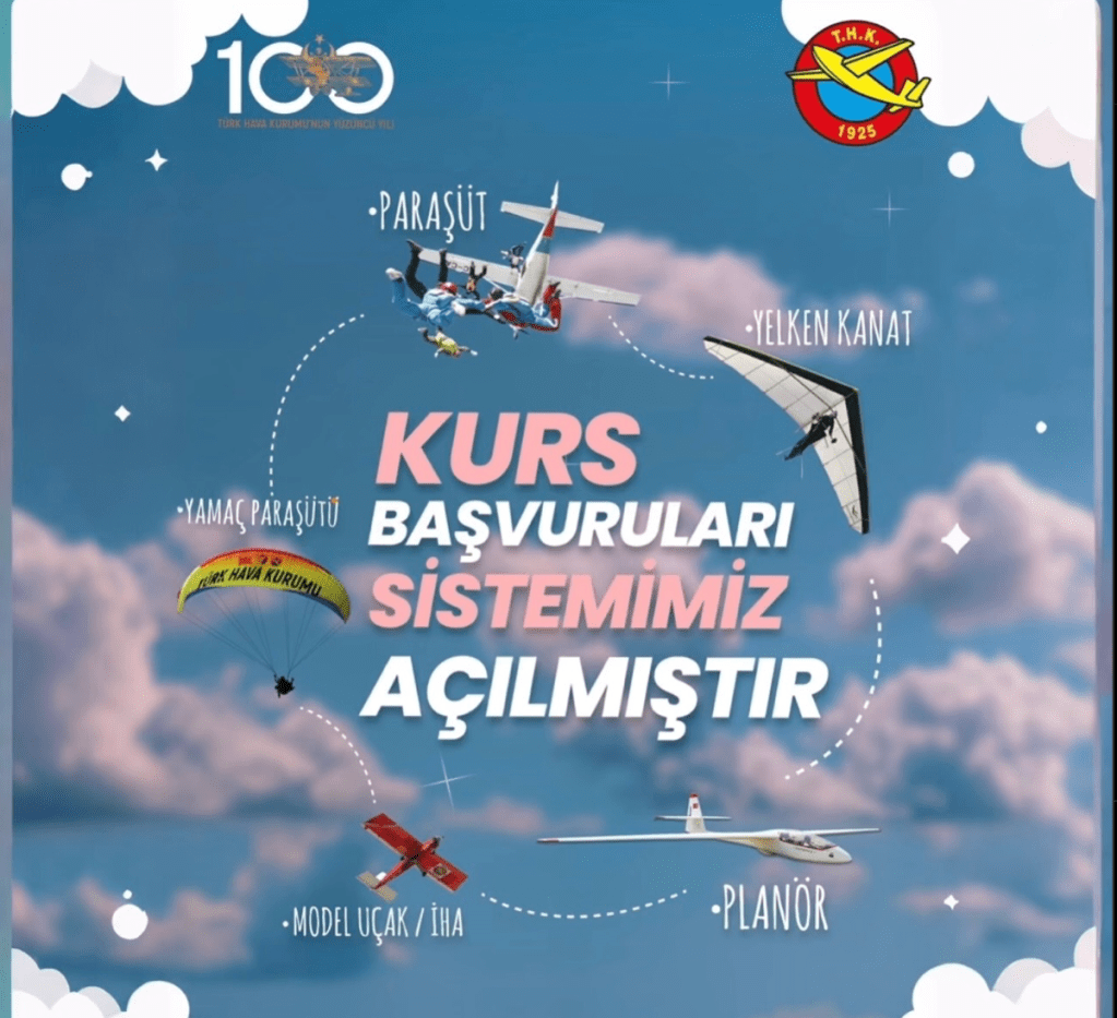 THK’nin Yamaç Paraşütü, Model Uçak/İHA, Paraşüt, Yelken Kanat ve Planör kurslarına başvurular başladı. Başvuru için: kis.thk.org.tr