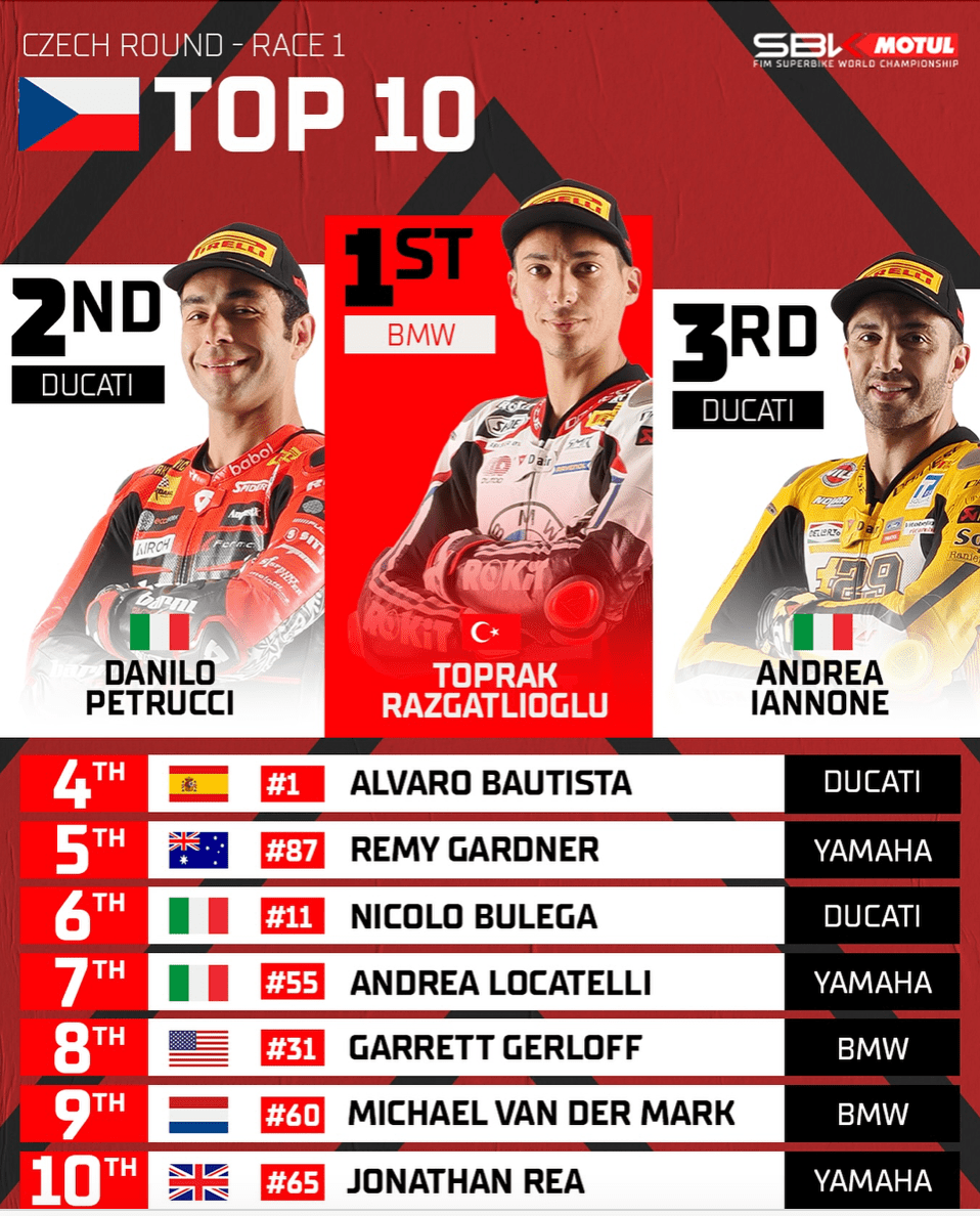 Toprak Razgatlıoğlu Çekya Yarışını Kazanarak Üst Üste 10 Yarışını Birincilikle Tamamlamış Oldu