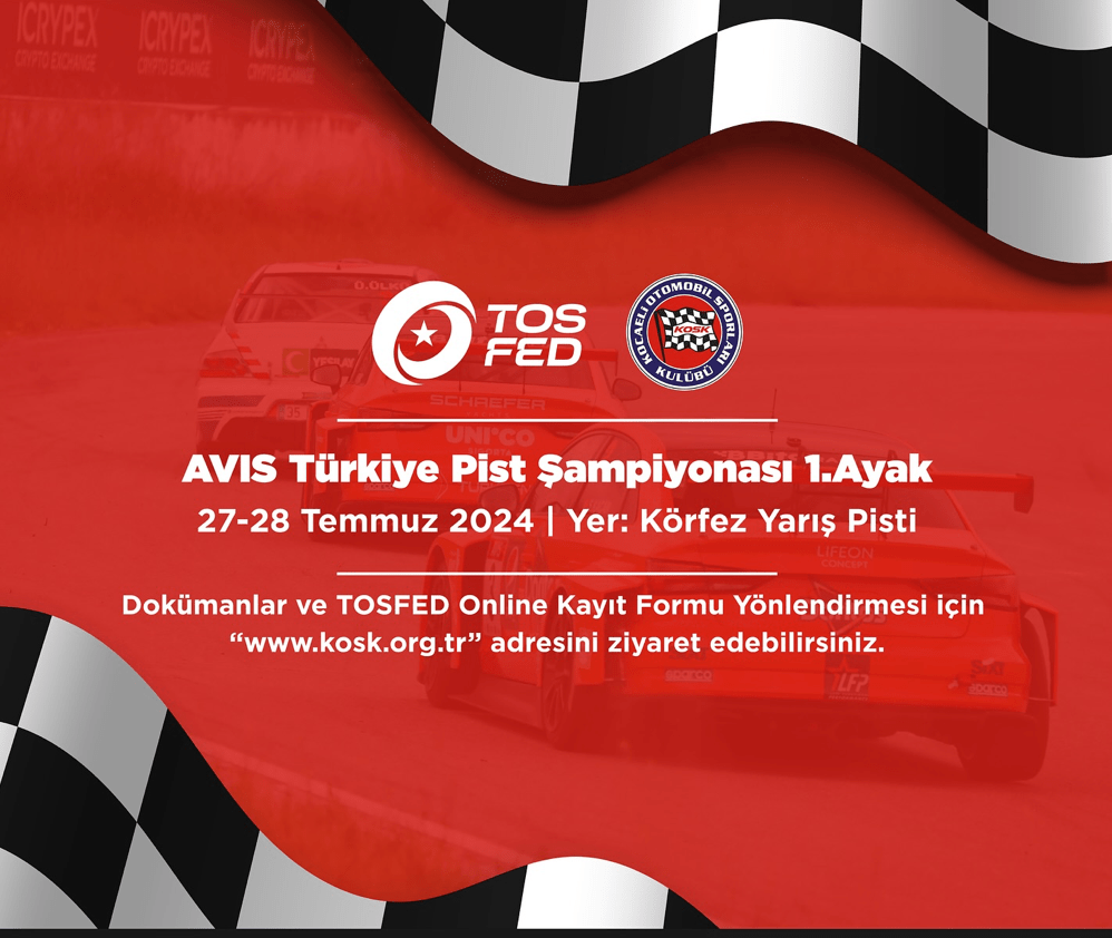 AVİS 2024 Türkiye Pist Şampiyonası 1.Ayak yarışı Kocaeli Otomobil Sporları Kulübü tarafından 27-28 Temmuz tarihleri arasında Körfez Yarış Pisti’nde gerçekleştirilecek. Detaylı bilgi ve katılım formu için; https://kosk.org.tr