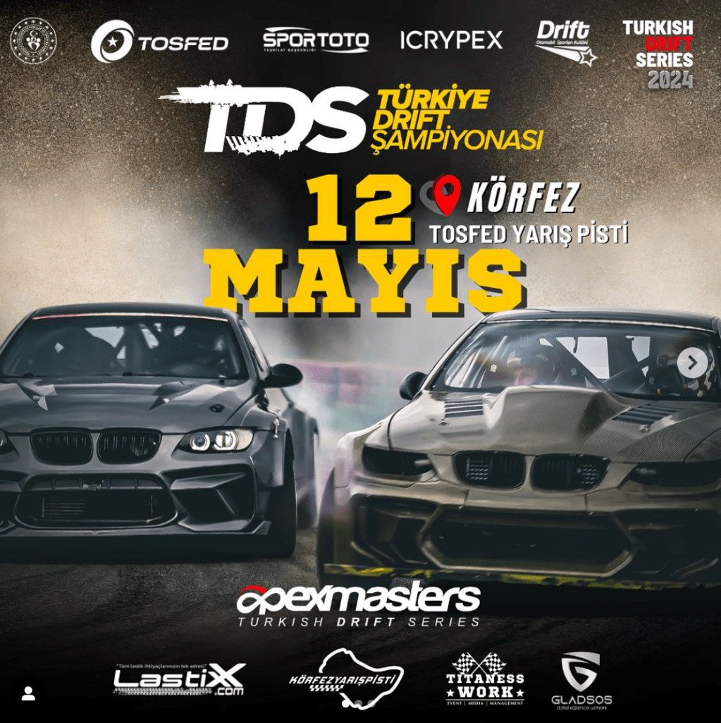 Türkiye Drift Şampiyonası ve TOSFED Drift Kupası 2024 Sezonunun ilk yarışı 12 mayısta Körfez Yarış Pisti’nde başlıyor. Detaylar ve biletler yakında yayınlanacak.