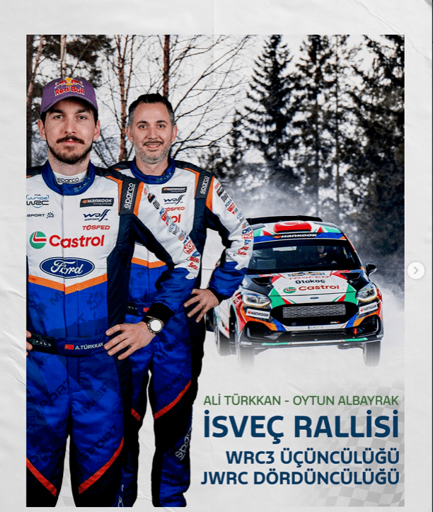 li Türkkan ve Oytun Albayrak ikilisi İsveç Rallisi’ni Junior WRC’de 4. WRC3’te ise 3. sırada tamamlayarak sezonun ilk yarışında podyuma çıktı. Ali Türkkan’ın kariyerindeki ilk İsveç Rallisi deneyimiydi ve ekibi, zorlu koşullara rağmen performansı ile podyumda yerini aldı. Yarışın son etabını birinci tamamlayarak ekstra puanı hanesine yazdırdı.