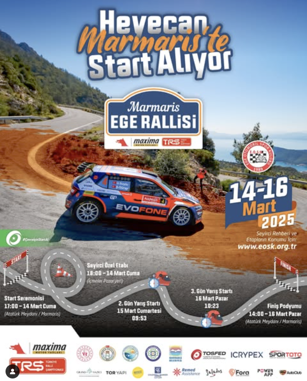 Marmaris’te Ege Rallisi 14 – 16 Mart 2025 tarihinde asfalt etaplarıyla gerçekleştirilecek.