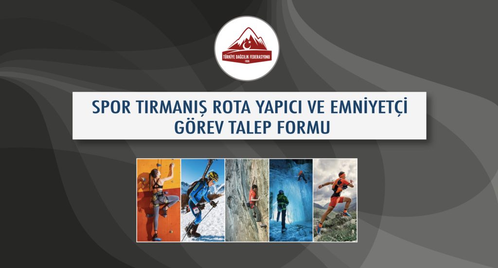 Spor Tırmanış branşında 2025 yılında Türkiye Dagcılık Federasyonu yarışma takvimine uygun olarak planlama yapılabilmesi için görevli başvuruları alınmaya başlanmıştır. Bu kapsamda vizeli rota yapıcı ve emniyetçilerimizin görev almak için ön talep formlarını 15 Ocak 2025 Çarşamba gününe kadar doldurmaları gerekmektedir. Detayılı bilgi ve form için; https://tdf.tr/2025-yili-rota-yapici-ve-emniyetci-gorev-basvurulari/
