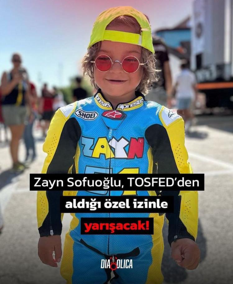 Türkiye Otomobil Sporları Federasyonu’nun izniyle 5 yaşındaki sürücü Zayn Sofuoğlu, TOSFED Karting Micro Destek Kupası’nda yarışacak. Zayn, Türkiye Şampiyonası’nın en genç yarışçısı olacak. Görsel: https://www.instagram.com/dia8olica?igsh=eDVuOW1udHpjcnI5